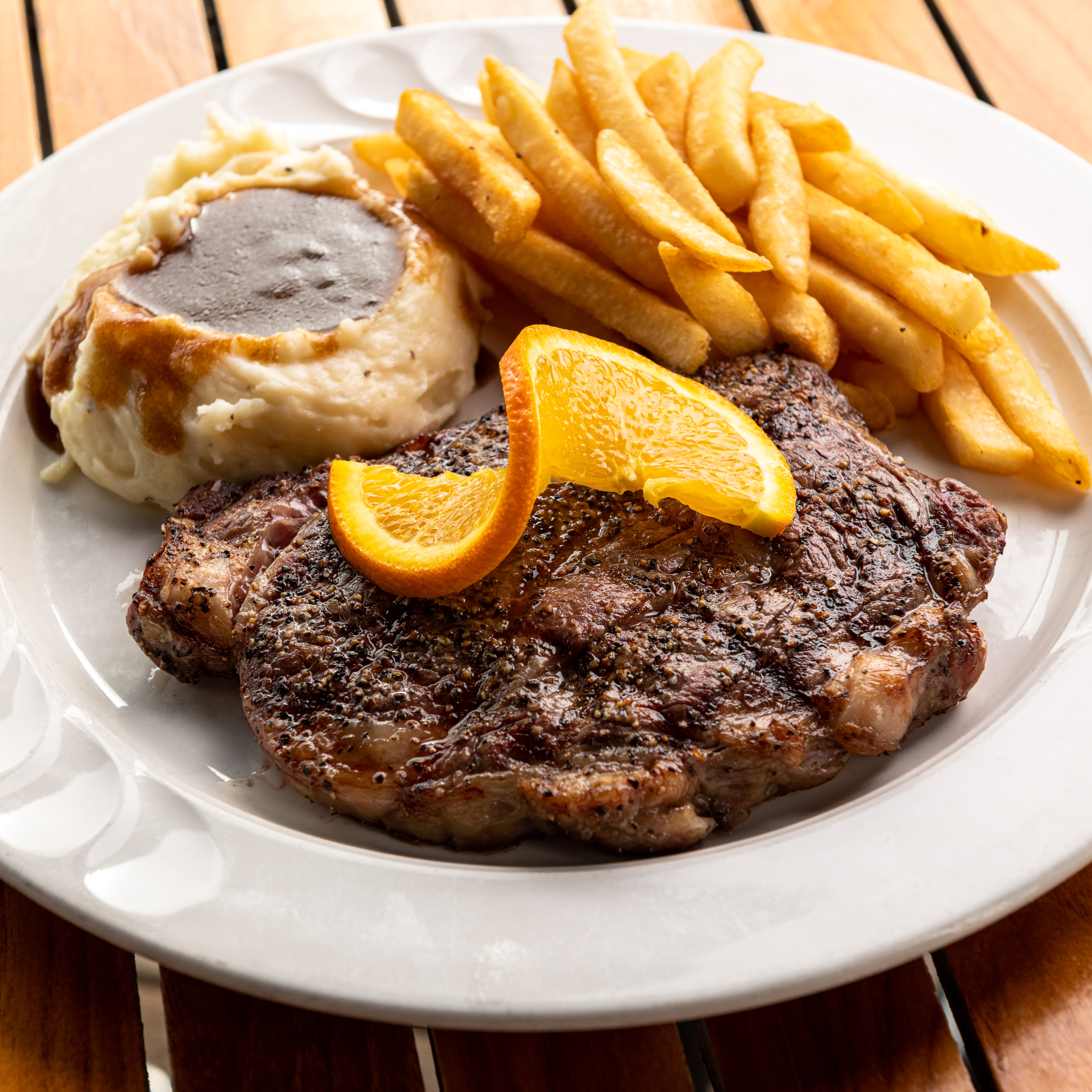16oz hand cut ribeye grilled to your liking Add sautéed onions +1 ala mama peppers . mushrooms +1.50 ea.