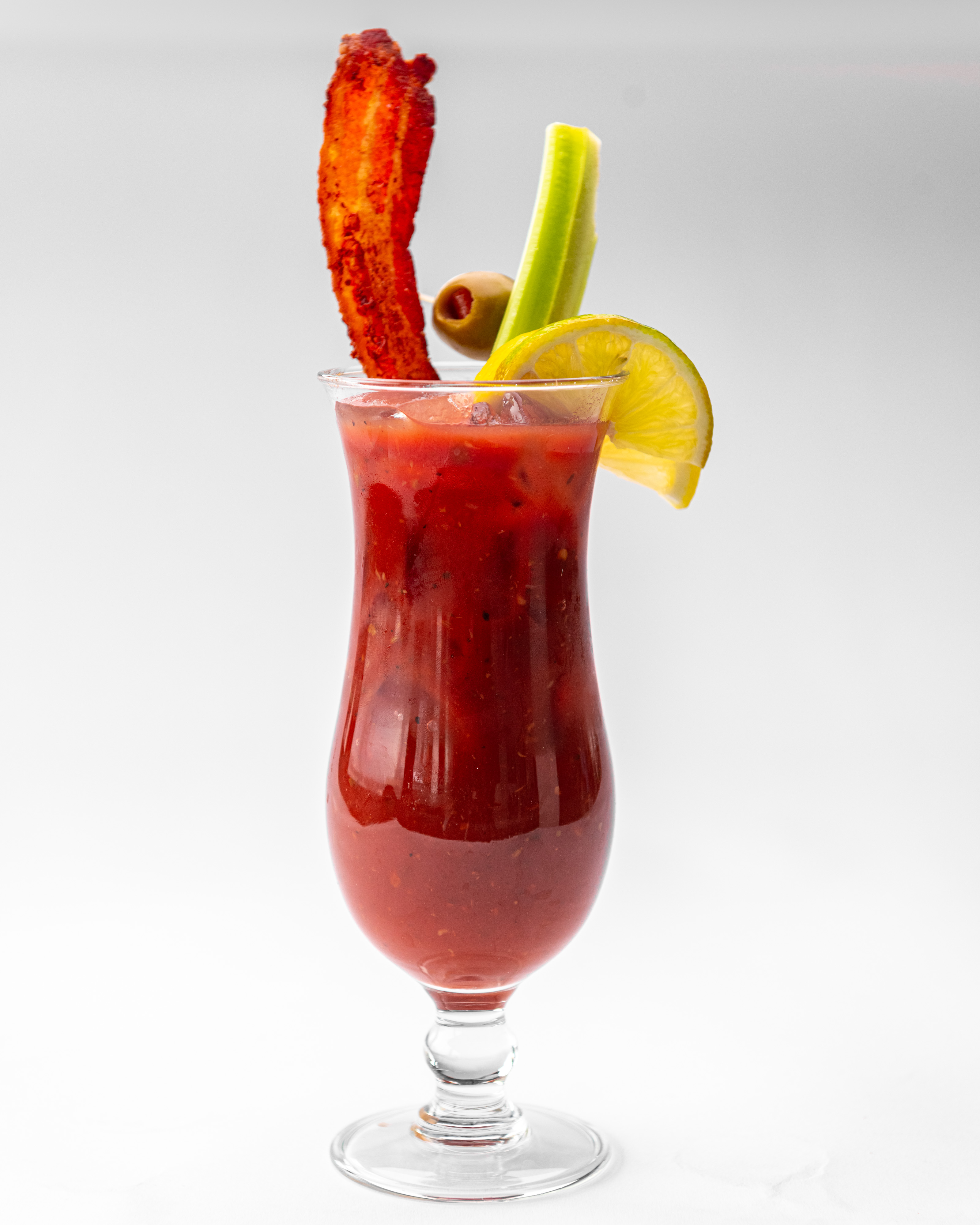 Tito’s Handmade Vodka with our house spicy Bloody Mary mix and a crispy bacon stirrer.