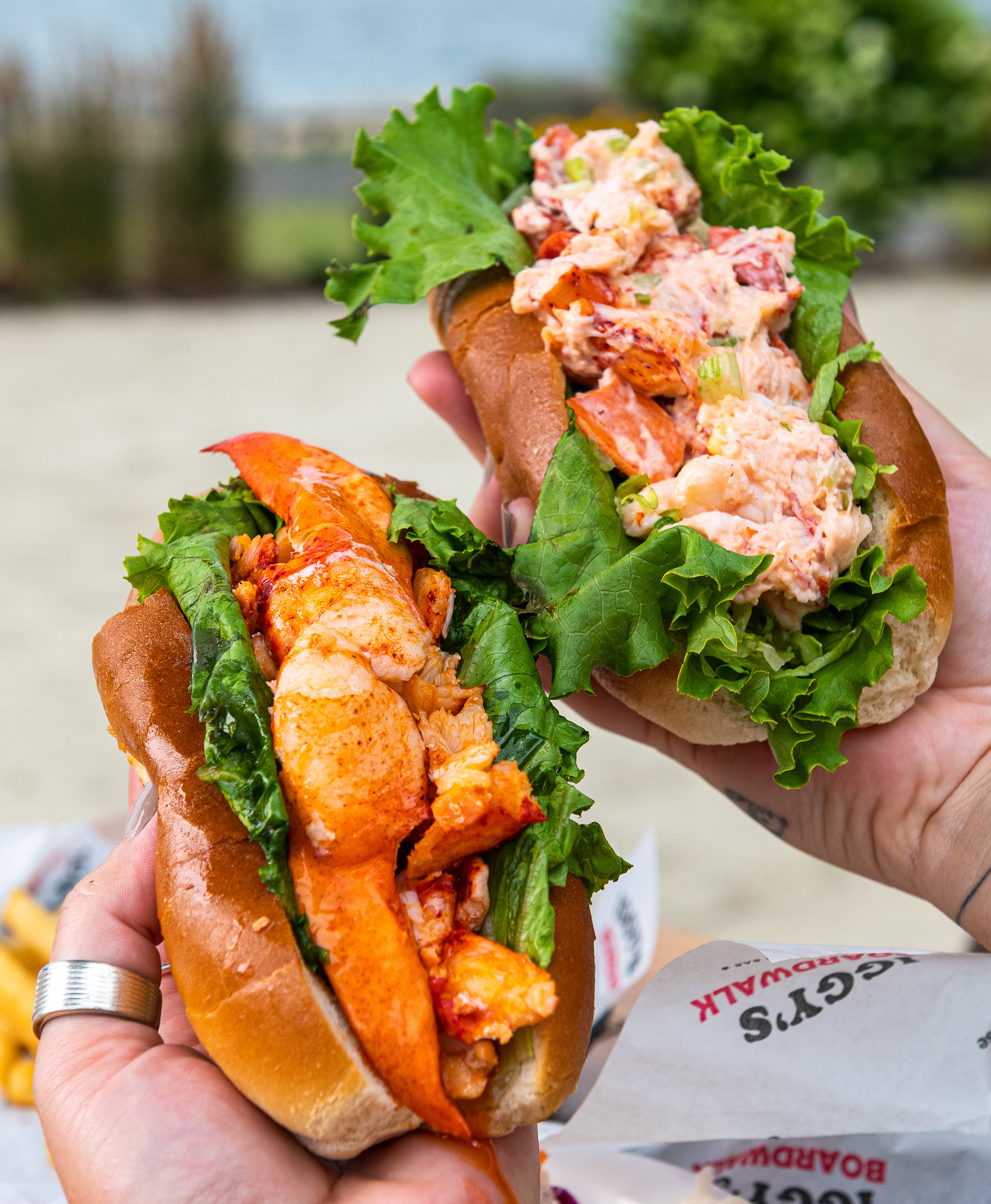 Indulge in the luscious flavors of Maine with a generous serving of butter-poached lobster tail, claw, and knuckle meat, served on a buttery brioche roll with crisp lettuce. Savor the taste of the coast, accompanied by crispy seasoned fries and coleslaw. **Gluten free buns are available for an up-charge, this however will not make the entire meal gluten free.