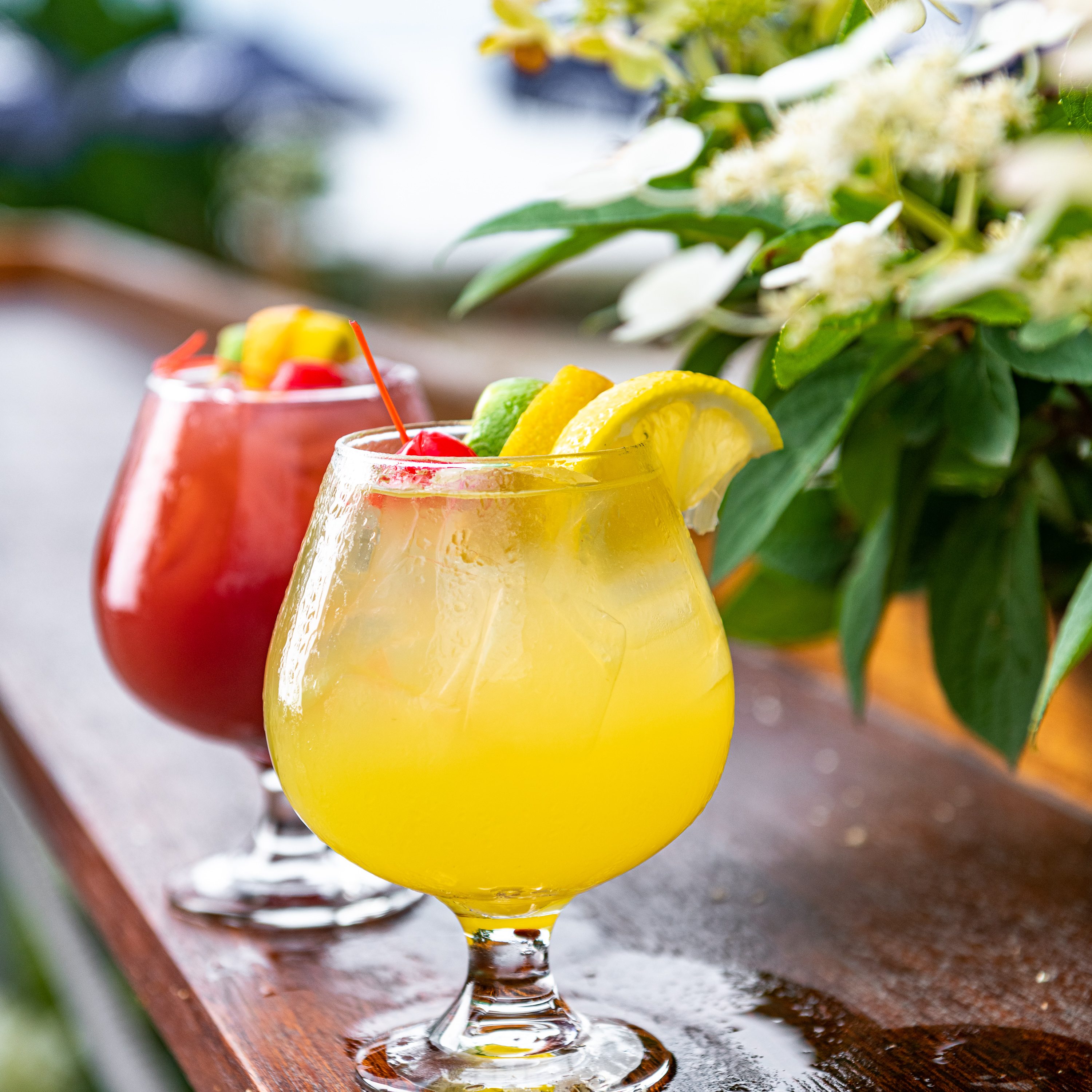 A tropical blend of fresh juices, liqueurs, and wine. Available in Red, White, or Pink. Also available by the pitcher.