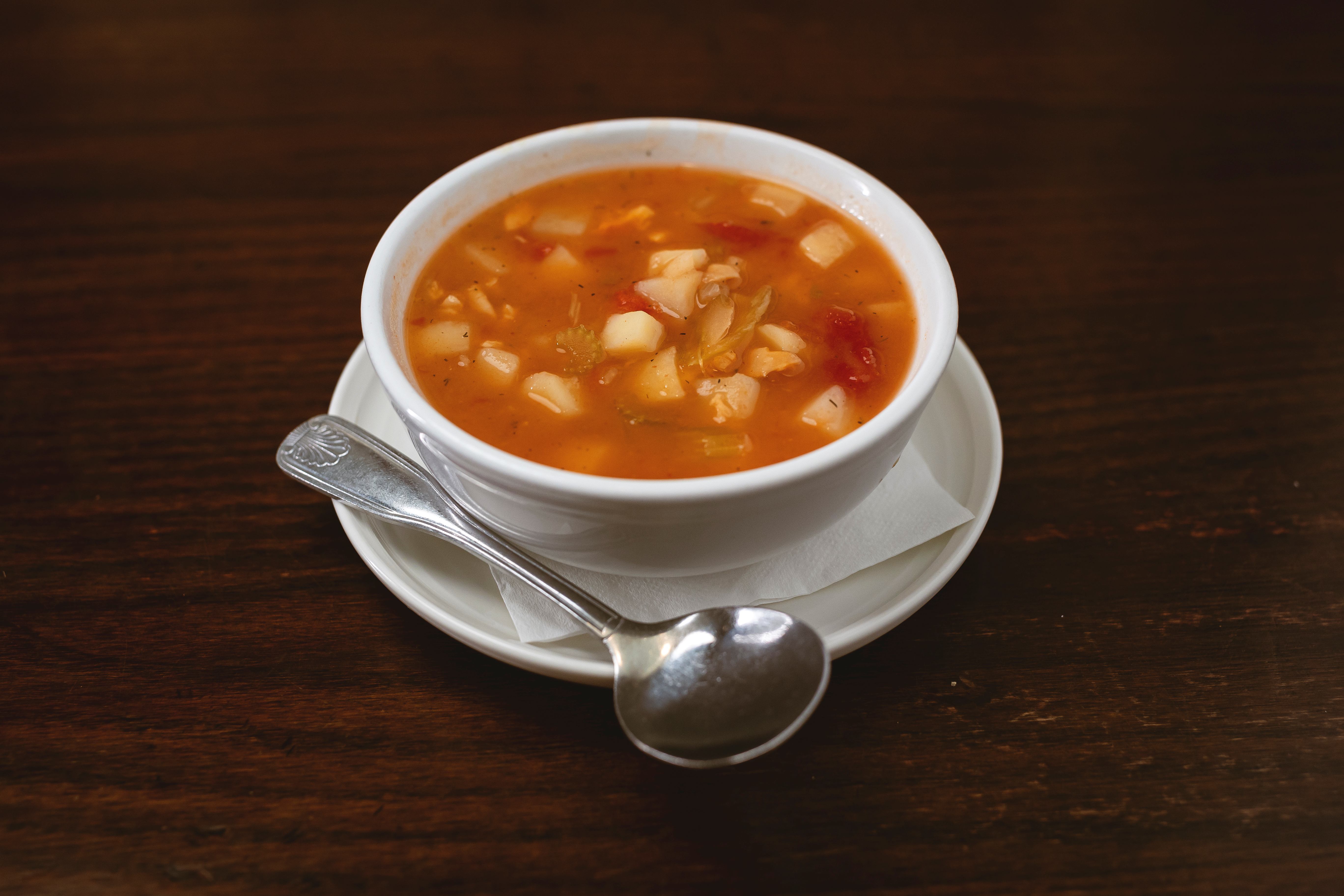 WHITE CLAM CHOWDER (New England) A creamy and comforting soup brimming with tender clam pieces, diced potatoes, and savory seasonings, creating a classic New England favorite known for its rich, hearty flavor. RED CLAM CHOWDER (Manhattan) A robust and flavorful soup featuring a tomato-based broth filled with fresh clams, diced potatoes and aromatic herbs, offering a delightful twist on traditional chowder. CLEAR CLAM CHOWDER (Rhode Island) A light and savory broth infused with the essence o