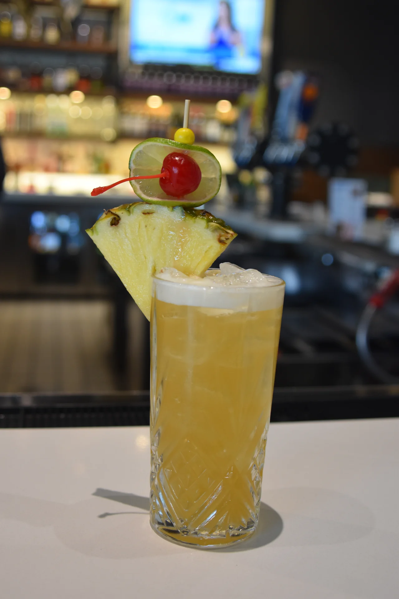 Goslings Bermuda black rum, aged island light rum, lime, pineapple, orange liqueur, orgeat