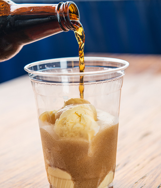 Vanilla ice cream topped with your choice of fountain or bottled soda
