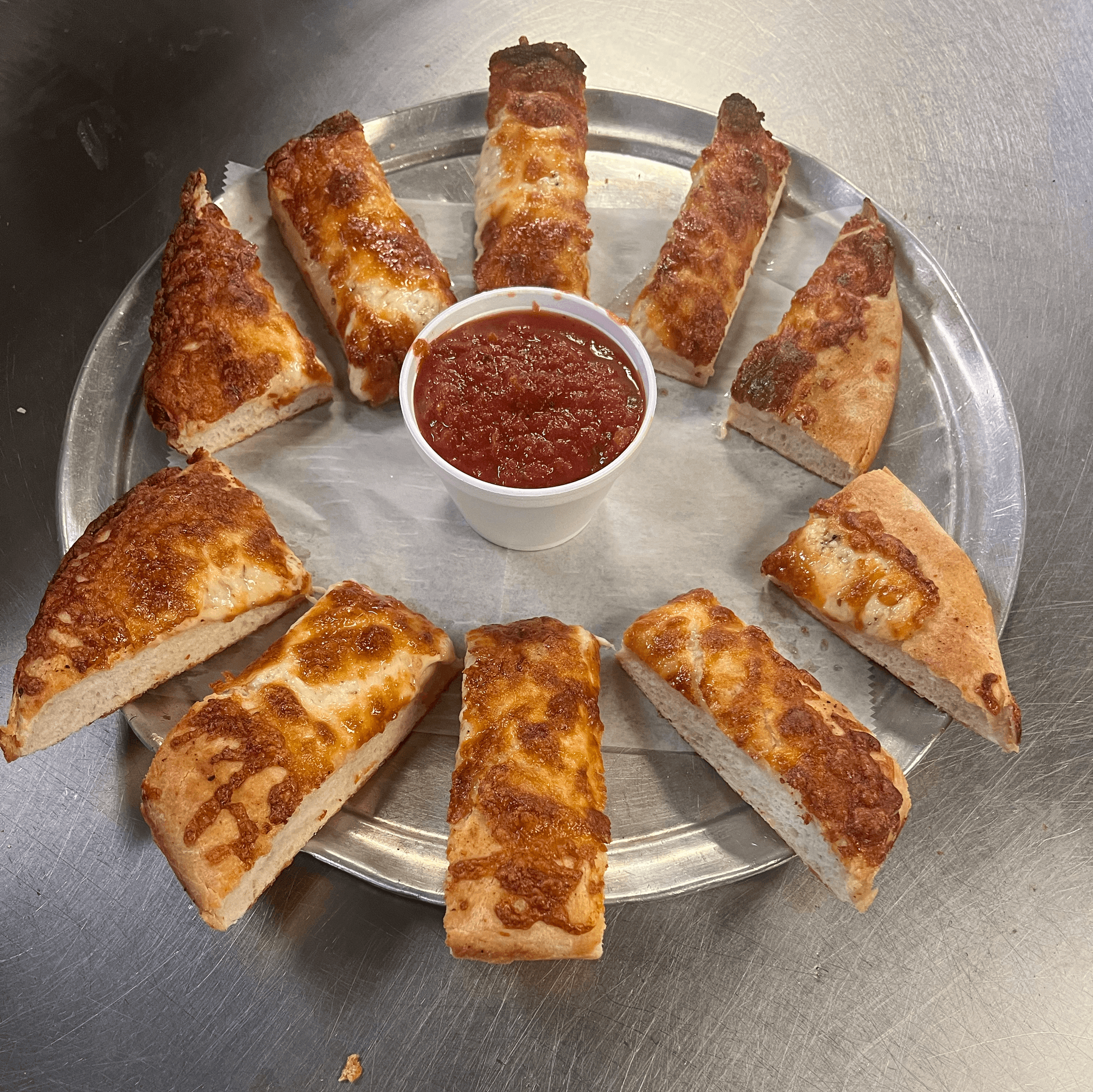 Cooked dough with melted mozzarella cheese, garlic butter spread & sprinkled garlic powder. Every order comes with one side of marinara sauce.