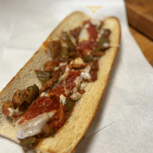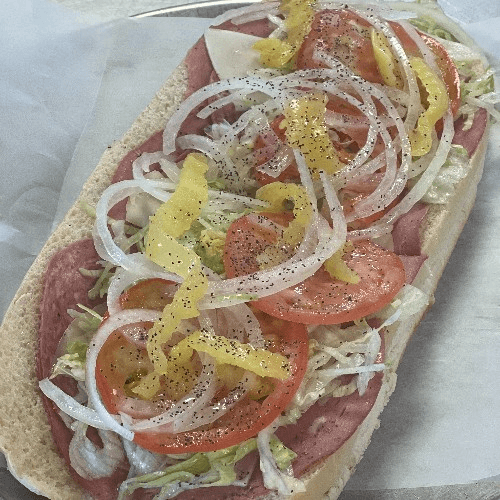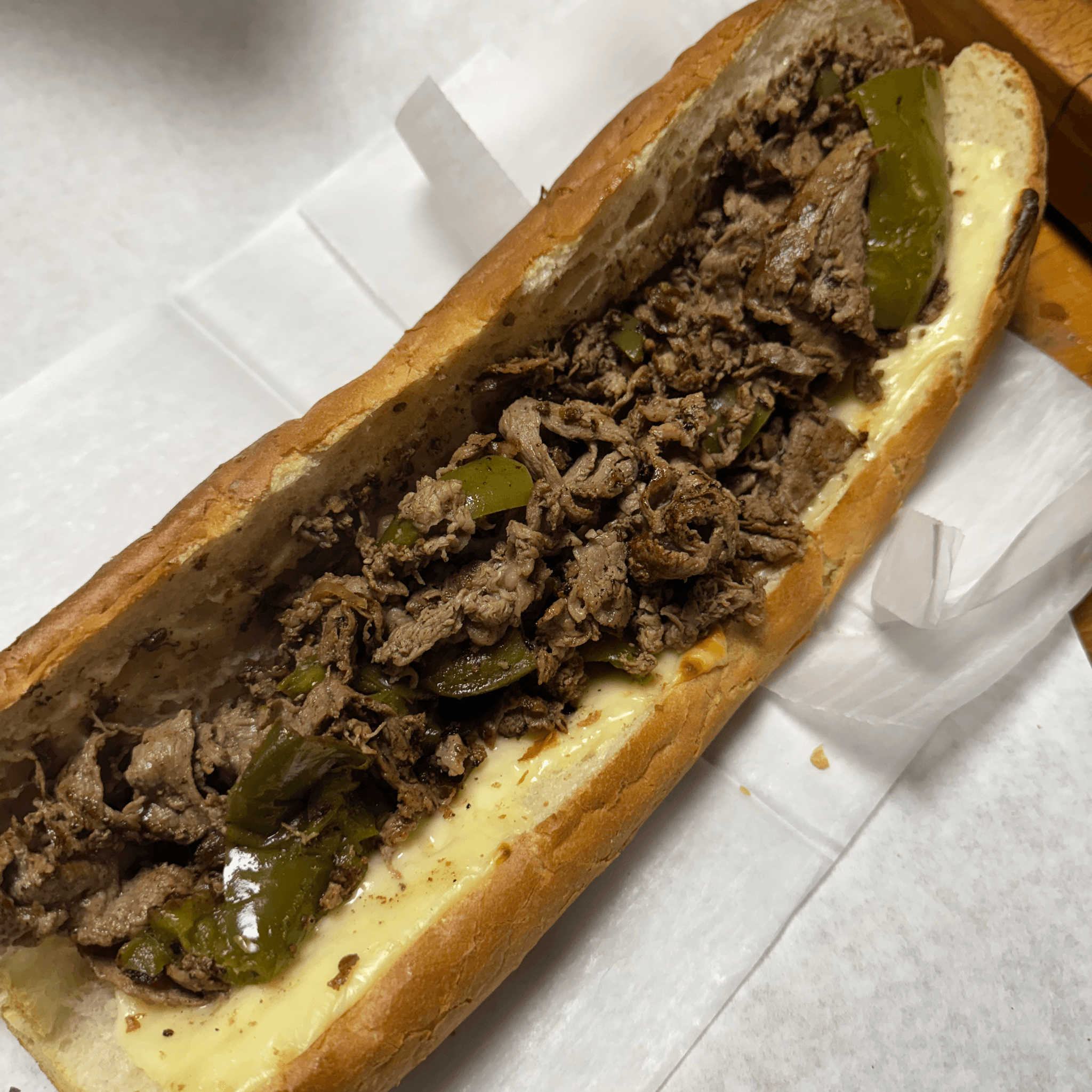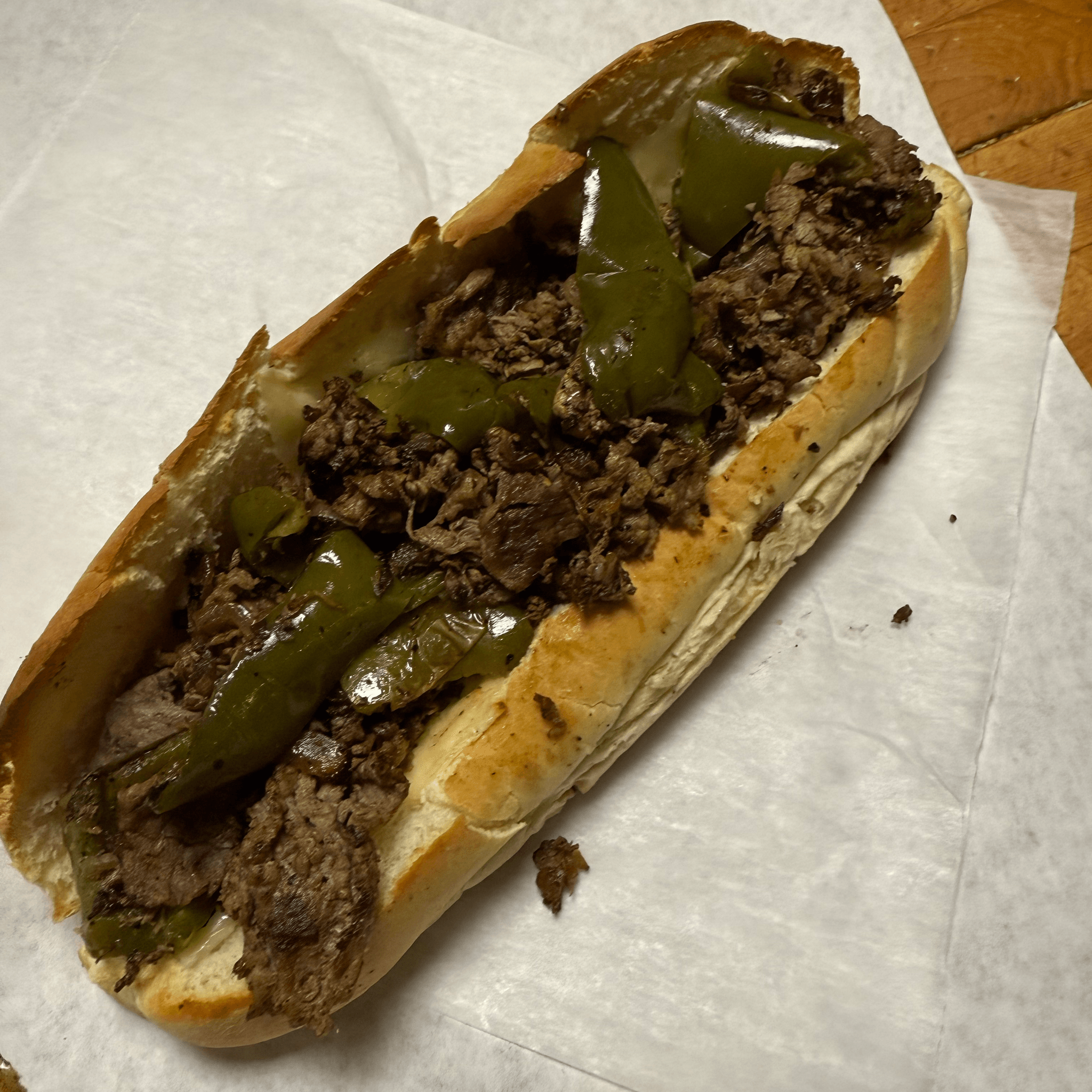 Cooked pastrami, onions, peppers, melted provolone cheese.