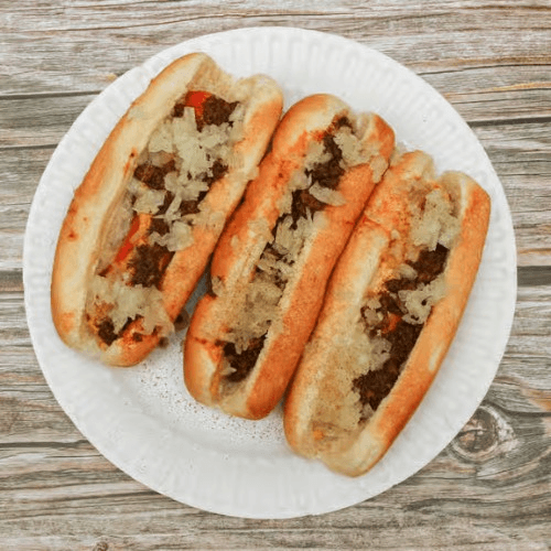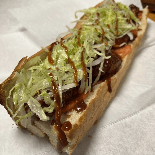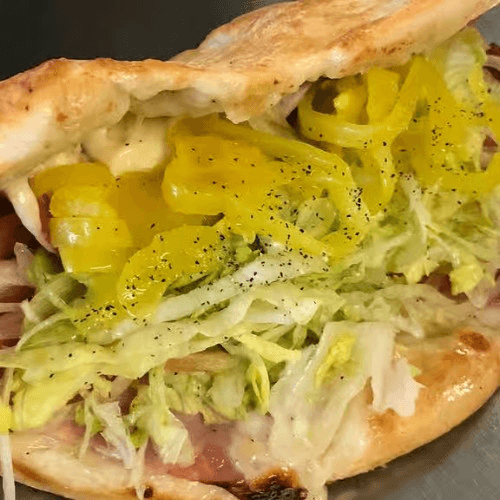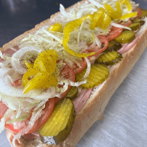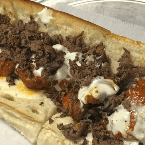 Cooked pastrami, onions, peppers, and melted provolone cheese.