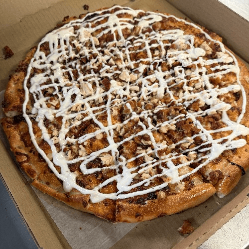 Crispy chicken pizza with 32 pieces. Choose from plain, Buffalo, BBQ, Buffaque, Teriyaki, or Sweet Chili flavors.