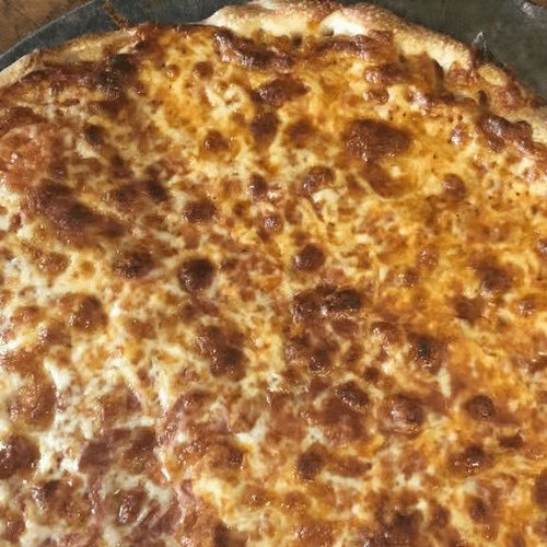 A classic cheese pizza topped with a generous layer of melted mozzarella and a rich tomato sauce on a hand-tossed crust.